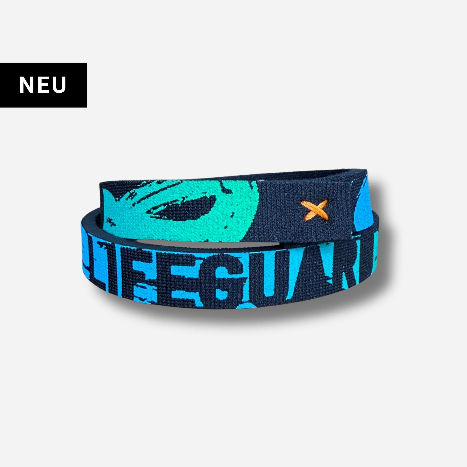 - Inspiriert von den Farben des Ozeans im lebendigen Blau-Grün-Verlauf mit dem Schriftzug LIFEGUARD - im handgedruckten Siebdruck.